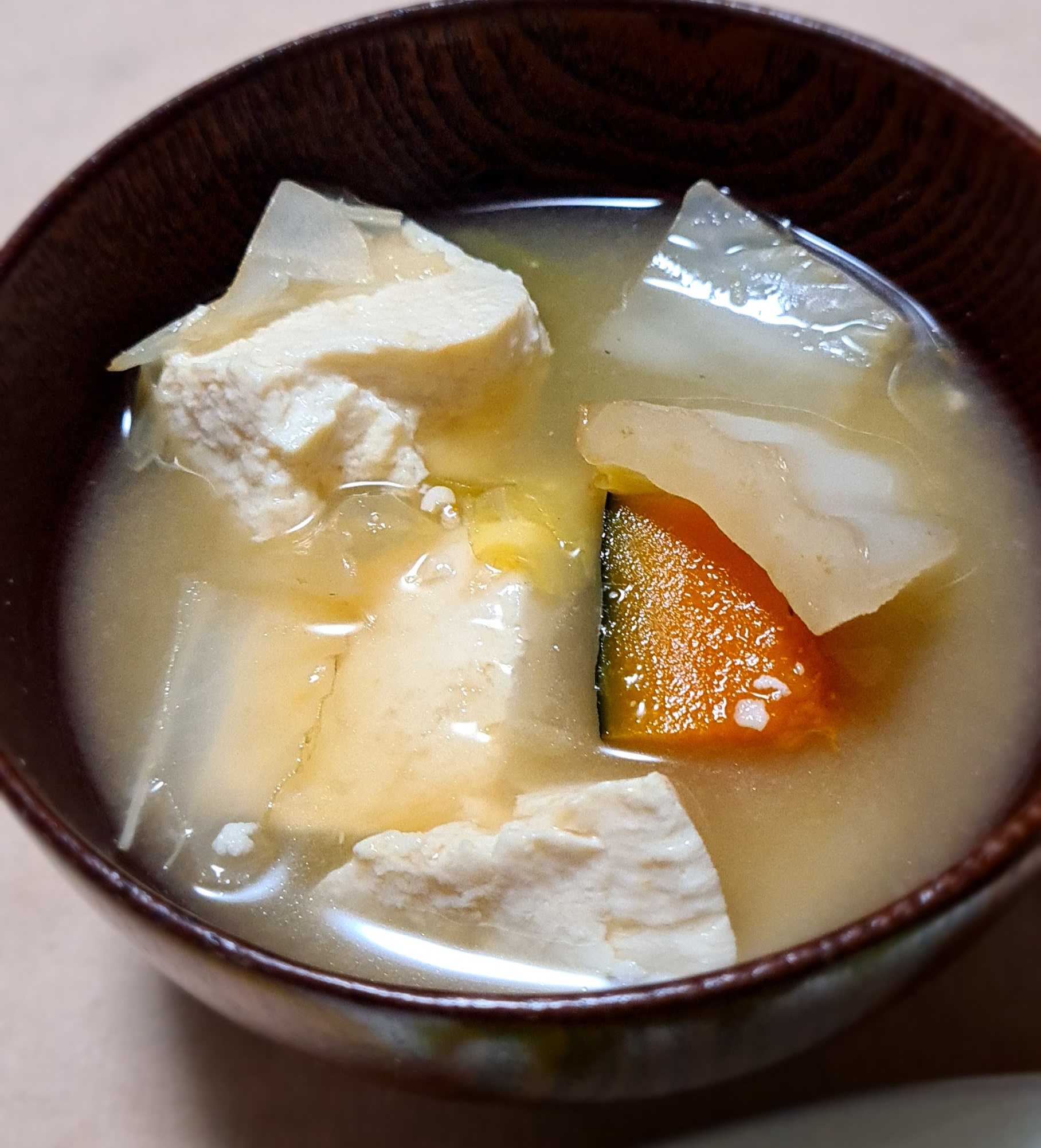 白菜•お豆腐•かぼちゃのお味噌汁も💮