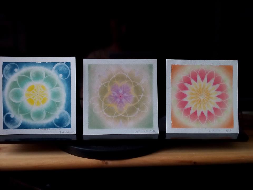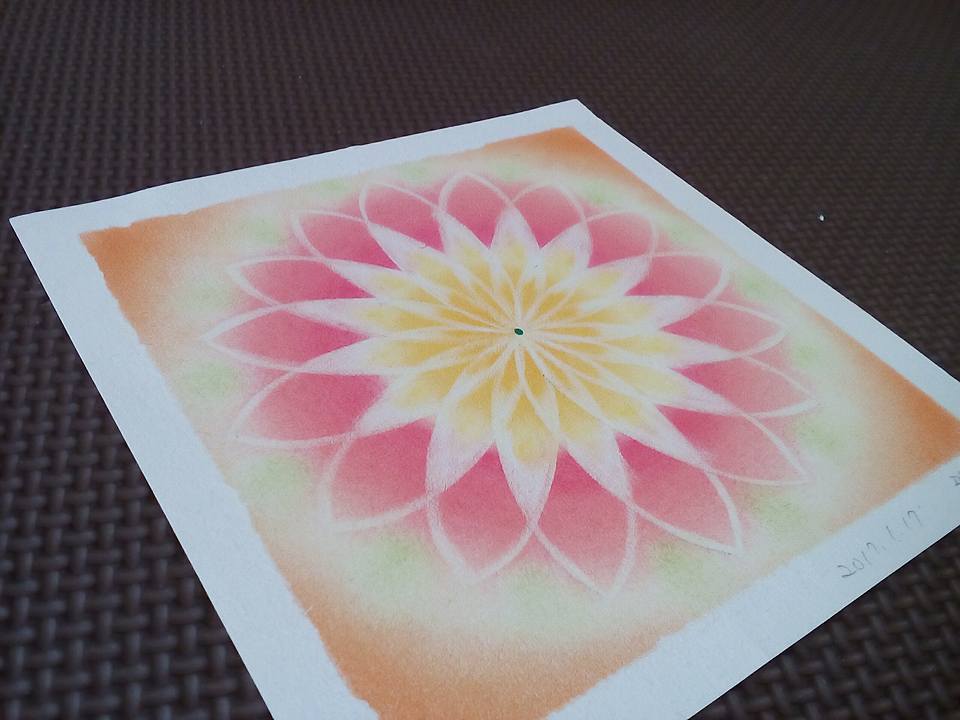 まず、午前中に 基本の曼荼羅パステルを 体験していただき、色の入れ方や消しゴムの入れ方・向き合い方をお伝えします。