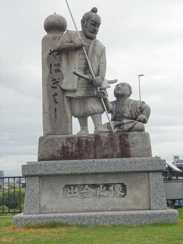 にほんブログ村 先日の推定・高見観音のすぐ近くには矢作橋があります。そこには次の「出会いの像」があります。これは日吉丸(後の豊臣秀吉)と蜂須賀小六の出会いに関する伝説を示しています。私はこの出会いの像の付近に、推定・高見観音はあったのではと考えています。その根拠は下記の通り。1)国道1号線沿いであること 矢作橋は国道1号線が矢作川を越える橋。 交通安全を祈願して建てられた高見観音に相応しい設置場所です。2)弘化2年の石碑と共にあること 足助(あすけ)町の弘化2年の石碑が街道の道標であったように、 観音像の横の石碑も街道沿いにあったと推定されます。 足助町の石碑は矢作川近くにありますので、 今回の石碑も、旧東海道(国道1号線), 矢作川付近にあったと推定されます。3)五色園での浅野祥雲作品の存在 五色園の浅野祥雲のコンクリート像は、大半が宗教に関わる作品です。 しかし宗教とは無縁の異彩を放つ作品があります。 それが次の「矢作橋の出会いの像」です。 矢作橋で寝ていた日吉丸。 そこを通りかかった蜂須賀小六一行が、日吉丸の頭を蹴りました。 日吉丸は一行に「詫びろ」と詰め寄りました。 日吉丸の勇敢さを示す逸話ですが、 実際にはふたりの生きた時代は異なり、出会いは伝説にすぎません。 浅野祥雲は高見彰七より、1歳年下。 しかし、浅野祥雲はプロ作家、高見彰七はアマチュアです。 高見彰七が観音像を建てる場を選ぶ時、 同世代のコンクリート像作家・浅野祥雲を意識して、 矢作橋付近を選んだとしても不思議ではないでしょう。以上は私の空想に過ぎません。しかし、高見彰七と浅野祥雲が同世代であったのは事実です。もし高見彰七が矢作橋に浅野祥雲の影を見ていたとしたら、ふたりの作品の類似性を見るという、新たな見方が必要になるのかもしれません。【 太閤秀吉献上ようかん 】 < ↓ ランキングクリックはこちらから > にほんブログ村
