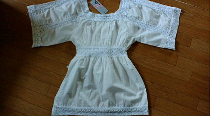 6/15に落札したチュニックが届いた~ 落札した翌日にショップから受注メールがきて 次の日入金、その日に発送メール 早いっ(´▽`●) これ以前に頼んだワンピはまだこないのに まぁワンピ頼んだショップさん北海道だしね (; -ω-) で、チュニックはこれです 後はりぼんがついてる 袖がワイドでかわいい レースはもっと薄いかと思ってたのに 太い・・・(´・ω・`) サマーニットみたいな厚みがある糸で編んであります ま、まぁほつれにくくていいかな(゚ロ゚;) 中国製ってことですが、裁縫はそんなに雑じゃないです よかった\(^O^)/ 薄いから一枚じゃ着られないけど それは予想してたから全然OK むしろ夏にぴったり 着丈はおしりギリギリの長さ 画像のモデルさんみたいに下はショーパンで着るんだ~ヾ(*ΦωΦ)ツ 245円+メール便160円 満足なお買い物でした だってここのショップさんで何度も同じチュニック出品してるけど メール便対応で(同じ商品でも通常配達840円の物がある) 一番安く落札できたの今のところ私みたいだし まだまだ出品してるよ~ 炎の店オークション