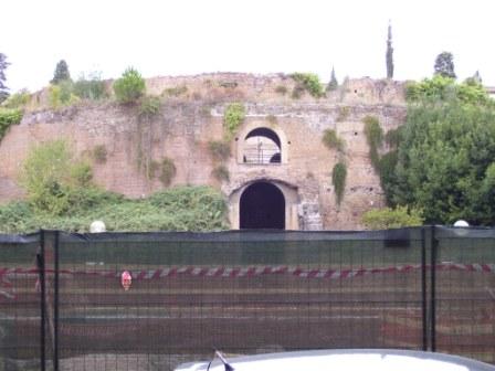 2007年10月22日 午後の部 コンドッティー通りで解散した後は、アウグストゥス帝の廟(皇帝廟)へ向かいました。 カエサル(シーザー)が後継者として養子にしたオクタヴィアヌスは、カエサルが暗殺された後カエサルの遺志をを継ぎ、カエサルの右腕であったライバル・アントニウスとの政争と戦闘に勝ち、初代ローマ帝国皇帝になってアウグストゥスと名乗ります。 そのアウグストゥスが建てた霊廟で、直径が90mもある円型で三段積みの建物です。ここに最初に葬られたのは、彼の後継者の第一候補であり、甥であったマルケルスでした。マルケルスの他にこの霊廟に葬られたのは、アウグストゥス、第二代皇帝ティベリウス、第五代皇帝ネロ、その母アグリッピーナがいます。 建てられた当時は、いやでも目立つ建物だったと思います。現在では、何なのかを知らなければ、空堀に囲まれたただの古い建物にしか見えないでしょう。でも、紀元前29年に作られたものなのです。それが2000年以上の時を経ていま、自分の目の前にあることにちょっと感動しました。 アウグストゥス帝の廟で感動した後は、すぐ近くにあるアラ・パチス(平和の祭壇)に向かいました。正式名称はアウグストゥスの平和の祭壇。カエサル暗殺後のローマ人同士の戦争を経て、アウグストゥスによってもたらされた平和の到来を祝い、この平和が長く続くようにと願うローマ人の想いの象徴として紀元前9年に完成したものです。現在はテヴェレ川沿いの近代的なガラス張りの鞘堂に守られています。 しかし、本日月曜日は休館日でした。残念。 お昼も過ぎてお腹も空いたので、スペイン広場まで行って食事を取ることに決めて、コンドッティ通りを戻っていくことにしました。つづく迅