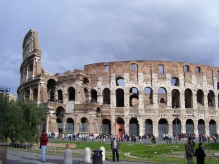 2007年10月22日 午後の続き フォロ・ロマーノの「聖なる道」の終点近くまで来るとコロッセオが見えてきました。 フォロ・ロマーノ側からのコロッセオ。 この写真の正面あたりに見学入り口があります。 コロッセオの入場券、 ひとり11ユーロ。 完成は紀元80年ティトゥス帝の時代。完成を祝う祭典は100日間に及び2000人の剣闘士と9000頭の猛獣の命が失われたといわれています。 長径188m、短径156m、周囲527m、高さ57mのまさに巨大な闘技場。アリーナの床は失われ、地下の猛獣を入れた檻や剣闘士の控え室などが良く見えます。 コロッセオの2階から見えるフォロ・ロマーノ もともとはちゃんとした円形の闘技場の形をしていて、全てのアーチ部には彫刻が飾られていたといわれています。しかし、使われなくなって廃墟となった後に、格好の建築資材として彫刻や石材が持ち去られ、現在のような姿になってしまったのでした。 フォロ・ロマーノとは反対側からみたコロッセオ コロッセオを堪能したら5時近くになっていました。 これで行ってみたかったところが一段落したので、子供たちや甥、姪へのおみやげを探すために、フォーリ・インペリアーリ通りを経てナツィオナーレ通りを共和国広場方面に歩きながら、通り沿いの店をのぞいて回ることにしました。迅