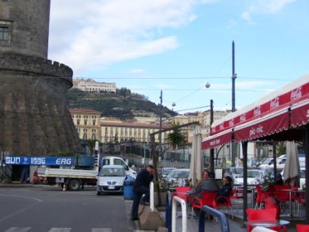 2007年10月23日 ローマ3日目つづき ナポリの船着場でポンペイ組と分かれて、ナポリで待っていたイタリア人ガイドに連れられてジェット・フォイル乗り場へ向かいました。このガイドは、バスで一緒だったガイドより日本語がひどい。単語を並べるだけ、にちょっと毛が生えたのような程度。時々何をいいたのかわからにことがありました。 ナポリの船着場のカフェ フェリー乗り場を見下ろすヌオーヴォ城 ナポリ組のメンバーは、例の3人娘のほかに、同じく半日ウォーキングツアーで一緒だった女性中年4人組+男性1名(女性は姉妹や親戚のようでした)、若いカップル、そしてご主人がリタイヤして旅行三昧の品の良い老夫婦に私たちの総勢14人。 ジェット・フォイルの切符が配られいよいよ乗船。およそ45分の船旅です。波は比較的静かで船酔いの心配はなさそうです。私は船に酔ったことはにのですが、奥さんが昔、ホバー・クラフトで酔ってしまった経験があり心配していました。でも今日は揺れもほとんどなく、その心配もなさそうです。 ジェット・フォイルの切符 左が行きで右が帰り 波が高いと心配なのは「青の洞窟」。 洞窟の入り口は小さく、従って小さな船で入っていくわけですが、波があると入り口が危険な状態になるので、入場禁止になることがあるそうなのです。 カプリ島が間近に迫ってきたころ、船が上下に大きく揺れ始めました、ちょっと気持ちの悪い揺れ方です。この揺れで3人娘のひとりと、女性4人組+1の男性が酔ってしまったようです。 揺れを乗り越えカプリの港に到着。港は既にさまざまな国からの観光客であふれていました。さて、いよいよ青の洞窟です。・・・・・しかし。 「今、青の洞窟、だめです。波が高いです。入れません。先に食事して、青の洞窟OKだったら行きます。」 おいおい、今日のメイン・イベントだぜ。イタリアへ来ての初めての挫折。 ないものねだりをしても仕方がないので、黙って小型バスに乗せられて用意されているレストランへ向かうのでした。 迅