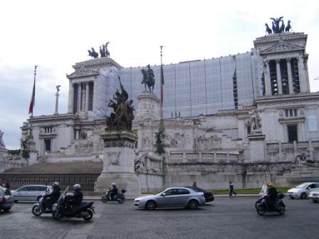 2007年10月24日 ローマ4日目のつづき トレビの泉を後にしてヴェネツィア広場へ。ここは2日目にも訪れた場所。ローマの中心あたりにあり、幹線道路が放射状に集まってきていて交通量が非常に多いところです。 ヴェネツィア広場とヴィトリオ・エマヌエーレ2世記念堂 ヴェネツィア宮殿(博物館) 15世紀中盤に建てられ、16世紀中ごろまで歴代のローマ法王が暮らし、18世紀末までヴェネツィア共和国大使館、20世紀にはムッソリーニのファシスト党の迎賓館として使われた宮殿。ヴェネツィア広場の西側を占める。 マルクス・アウレリウス帝の騎馬像(コピー)ヴィトリオ・エマヌエーレ2世記念堂の裏手カンピドーリオの丘にある、ミケランジェロがデザインしたカンピドーリオ広場に立つ。現存する歴代皇帝の像のうち、騎馬像は哲人皇帝アウレリウス帝のみ。オリジナルはすぐ横にある美術館の中にある。像の奥に見える建物はローマ市庁舎。 再びフォロ・ロマーノ。この西側(写真右手)に向かうと、「真実の口」が置いてあるサンタ・マリア・イン・コスメディン教会があります。 続きは11月30日のブログで書いています。迅