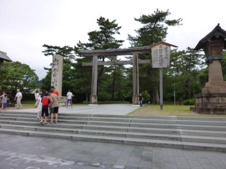 昨日は米子に出張だった。この機会を利用して、今日は出雲大社に参拝してきた。 出雲大社は現在60年ごとの遷宮のための本殿修造の真っ最中。伊勢神宮の遷宮のように本殿の建物をそっくり作り替えるのではなく、檜皮葺きの屋根の葺き替えや傷みの激しい個所の修繕を行うのだそうだ。これを修造とよんでいる。本殿の修造中は、大国主大神には仮御殿に移っていただくわけです。だから今日は仮御殿で参拝です。 そして幸運にも明日までの期間、本殿修造の様子を見せてもらえるというので、さっそく整理券をもらって本殿を覆っている素屋根の中に入れてもらって、足場を登り降りして修造の現状を見学させてもらいました。 これはすごいことで、通常であれば拝殿までしか近づけないのに、その内側にある領域に入ることができたんだ。さらに見学の記念として、今回の修造で剥がされた60年間屋根に張ってあった檜皮をお守りとしていただきました。なにしろ約64万枚もの檜皮が使われているそうだから。 本殿は国宝で、高さ24m。これだけでも通常の神社より高いのに、作られた当初の本殿は高さ48mの空中神殿だったようだ。 なにしろ直径1.35mもある杉の巨木を3本束ねて1本の柱が、出雲大社境内で2000年に発掘された。本殿にはこのような柱が9本立てられていて、出雲国造・千家家には同様の柱が描かれた「金輪御造営差図」が残されている。 そして平安時代の漢詩人・源為憲という人の「口遊(くちずさみ)」という書物には、日本の大きな建物として「雲太、和二、京三」とある。 一番が出雲大社、二番が大和(奈良)の東大寺大仏殿(約45m)、三番が京都の平安京・大極殿という意味。でもどうやって、こんな太くて長い柱を立てたのだろうねえ。これぞ神の領域?迅