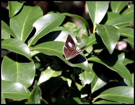 開張37~40mm、♂の紋様は赤または橙色、♀は白色です。裏面は銀色で飛んでいる