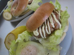 ベーグルってなんだかオシャレっていうイメージだけで今までさほど意識してなかったんだけど、最近カフェで買う手作りベーグルの味と質感にハマってます。こんなにおいしいんだぁ~♪ちなみにお店ではレシピを参考にしてるだけで、自宅で好きに具をサンドして食べてます。特にカワリメニューはありませんが、今までは、ハムベーコンと、照焼チキンサンドです。照焼はパンにはさむことを考えると味付けを濃い目にしてるほうがいいかも。シンプルなサンドでも充分ベーグルの質感と味でおいしく食べられるのダイエット中には気になるけれど、たまにしかたべないので休日の朝などに、おうちでカフェ気分を味わうには充分嬉しいです。パンやさんでベーグルを見つけたり、パン作りが好きな人なら手づくりしてもよさそうですよね♪次のブログでベーグルについてまとめておきます。おいしいし、低カロリー、冷凍もできるスグレモノ。皆さんの好きな食べ方は何でしょう?これからクリームチーズとかゼヒ試したいです!========================================================================*照焼チキンベーグルのプレートセット* バナナ、目玉焼きをつけました、ありあわせなので、彩が悪いですね~。照焼チキンとくればマヨネーズ。ダイエット中だけど、小さめの鶏肉とマヨネーズ控えめにしましたが充分おいしかったです~♪======================================================================== ========================================================================