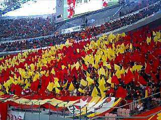 京都へ・・・夫婦で行ってきました。目的はひとつ。Jリーグ: 京都 vs 名古屋 (西京極)会場時間の2時間ほど前に京都駅に到着。う・・・・・ん。京都駅構内で、この中途半端な時間の使い方を『まだ』迷っている夫婦。とりあえず、帰りは疲れそうだから『新幹線で帰ろう!』ってことで、けち臭く「金券ショップ」を探す。・・・が、『ゴールデンウィーク中に使えるチケットはありません』という店員さんの言葉に、玉砕!「疲れてたら新幹線」に変更。結局、京都観光は・駅から近くて・ちょっとメジャーで・西京極に行くのが大変じゃない場所という、観光とは程遠い条件を出して、観光案内板の前に立つ。う・・・・ん。全く位置関係が分からない。こうなったら、一番近いトコにしよう!そして、改札口で暇そうに(スマン)している駅員さんに聞いた。行き先は『三十三間堂』『清水寺』ベタですかね?そして地上に出ると京都スイーツのお出迎えお試しキャンペーンということで、無料配布してました。そして、テクテクと歩き続けやっと到着さあ、次は『清水寺』が、ここへきて、普段の運動不足がたたり・・・「足、痛い」すぐに『清水寺は行ったこと有るしい~』なんつって却下。西京極行きとなりました。途中、観光客がわんさかと群がっているお菓子屋さんでお饅頭を買いみっともないが、旅の恥は掻き捨て!?と、歩きながらほおばる。(旨い!)その後、デパチカの惣菜コーナーを徘徊して何品かチョイスし、ビールも手に入れる。やっと到着!とりあえず席を確保し、場外のお店を回る。ん??ビールが売っていない。ということで、長蛇の列の売店をあきらめ、痛い足にヒーヒー言いながら近くのコンビニでビール数本購入。そして木陰のベンチでグビグビ!!ベンチに居合わせた、一宮から家族で来た!というサポーター奥様と1時間近く楽しい会話をし、いざゲーム観戦。勝ちました!シュート2本のうち1本が決まり0-1で。(節約やナ~)そして、帰りは京都駅の近くの居酒屋さんで久し振りに夫と打ち上げをして新幹線で名古屋へ。途中、いろんな人に「今日、どーでした??」と声をかけられながら。名古屋駅につくと、結構いろんなホームに名古屋サポーターがいました。みんな疲れた顔をしてるものの、顔を合わせると軽く会釈。(お疲れさんでした!)オマケにJ2岐阜もゲームだったようで、ちらほらいらっしゃいました。そして名古屋からの帰りの電車の中にも、名古屋&岐阜サポーターがいました。「お疲れさんでした」と挨拶をして電車を下りる。そして、またヒーヒー言いながら徒歩で帰宅。(日付が変わりそうな時間)昨日から、やっと足の痛みが取れてきた。今から、また瑞穂へACL観戦に出掛けます!!!今日は車で。