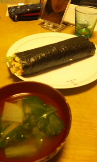 去年の記事見ていただければわかるんですけど我が家の恵方巻はどうもでかいのが特徴らしく…。 これだとなんか小さく見えますが後ろのコップが普通のサイズ、皿がカレー食べるやつですよ…。 まあ方位磁針用意して意気揚々と食べてたんですが食べ終わってから驚愕の事実。 方向が逆だった。 やべーなwww福ってよりはなんか災厄を招きそうだよwww でも美味しかったからいいんです。気にしませんそういうことは。 さて月曜日はドイツ語でてんやわんやだったので英語の講座を取れなかった。今週から週2で聞かないとやばいっていうのに月曜からペースを崩すとは何事かw ということで一応今日第4回を聞いて明日第5回を取ることに決定。辛い二日間ですが乗り切ります。 小倉さんの早口にも慣れてきたんで今日はWMPの昨日を使って1.2倍速で見ました。まだ聞き取れるんで明日は1.3倍速で見ることにします。 一度2倍速にしてみたんですがぺちゃくちゃぺちゃくちゃ何いってんのかわかりませんでしたw でも少し早めに終わったのでヨカッタヨカッタ。 さて他の高二は授業を受けてたのですが(自分だけ居候させてもらってる) それも終わりごろにSが悲鳴をあげる。なんでも彼氏にもらったストラップがいい感じに切れたそうで。 プッチり行ってますね。縁起が悪いにもほどがあるさねwSは執念で直しておりました。女はコエエ。 そんな感じで極寒の中を帰ってきた次第でございます。 それではオフロに入って寝ます。またノシ