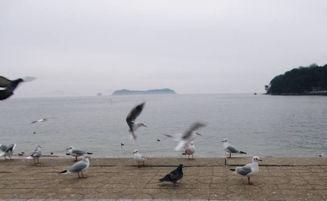 毎年、この季節になると ユーラシア大陸北部で、繁殖を終えたユリカモメが日本に渡来します。そして…我が地元の海にも例年と同じようにユリカモメの姿を見ることが出来ました。海岸には様々な鳥がいますが、やはり鳩が多いです。ユリカモメにカメラを向けてみました。「ハイ、ポーズ」行儀よく一列に並んで、皆同じ方向を見ています。なんとなく…笑える(^v^)沢山いるユリカモメの中でも、やはり人間と同じ、目立ちたがり?がいました。蒲郡クラッシックホテルで、モミジを楽しんだ後、竹島海岸に向かいました。平日なので観光客の姿もまばらでしたが、ユリカモメはやはり人気で皆さんカメラを向けられていました。
