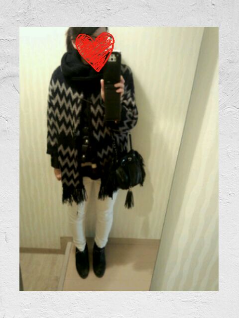 ご訪問ありがとうございます(^з^)-☆Chu!! 20130113 今日のcoordinateです。 ニット GAP パンツ&アウター 楽天カーデ YEVSバッグ ZARA カーデとパンツ、アウターはこちら。 アウターの上からイーブスのカーデ羽織ってます! お正月セールで買ったザラのバッグ。フリンジが可愛い☆ 評価もイマイチだったwhiteパンツも冬の方が使えるという新発見♪
