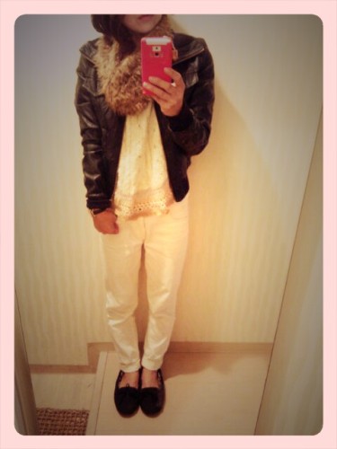 ご訪問ありがとうございます♪ 今日の格好は。。 ジャケット LOL ニット Q パンツ C.D.S 靴 ミネトンカ ティペット GU セレクトショップLOL Lani取り扱いのイメージですがオリジナルブランドもちょこっとあります。 レザーブルゾンは昨年のセールでget♪ 結構よかったです( ´艸`) パンツはプチプラなこれ! リオチェーンnet-shop