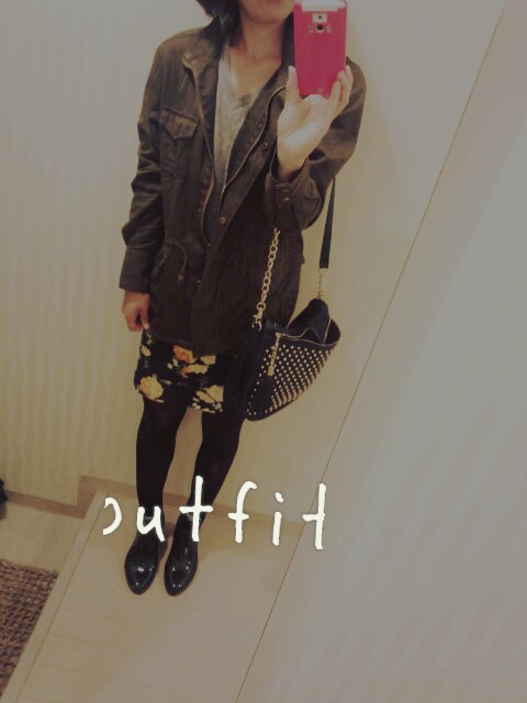 ご訪問ありがとうございます! 昨日の格好は。。。 jacket LE CIEL BLUE、knit mode robe、skirt F21 bag ZARA、Rain boots free fish ジャングル ジャングル