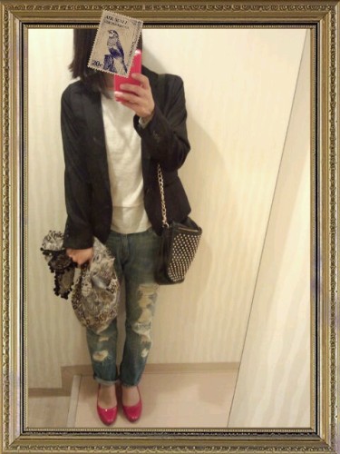 coordinate☆ 土曜日のstyleです! ジャケット セレクトショップLOL スカート FOREVER21靴もらいもの バッグ Francfranc×natsu ピンストライプのマニッシュパンツ、探しちゅう。 titivate(ティティベイト) continental Mode Robe