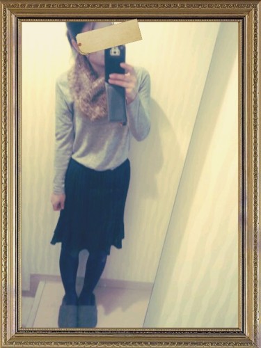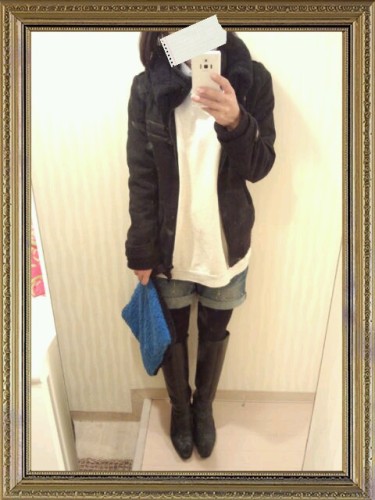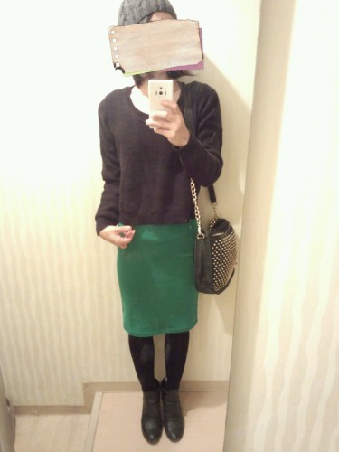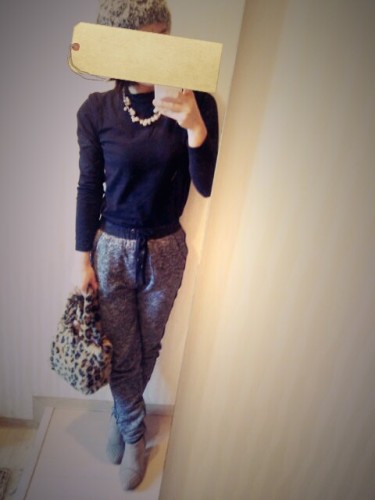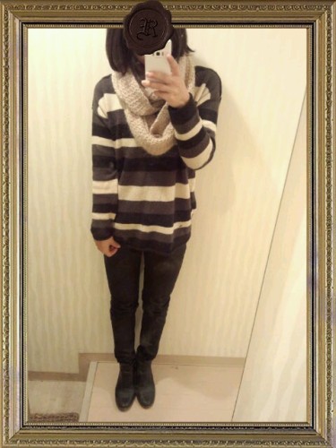 昨日のカッコ! GAPのニットとGUのパンツ。H&Mのブーツにハンドメイドのスヌードでした! GUのパンツはコーティング♪昨年のだけど気に入ってるので今年も履いてます!