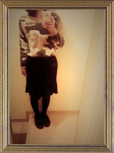 ご訪問ありがとうございます♪ 昨日のカッコ! ニット 楽天(昨年のもの) スカート DHOLIC【ディーホリック】 靴 ミネトンカ DHOLIC【ディーホリック】 結構フィットするタイプなので大人っぽく履けます♪ スカートでもこのタイツでぽかぽか~ 本当重宝してます! 迷彩ニット。 迷彩はボトムに取り入れた方が和らぐってテレビで誰か言ってたな。
