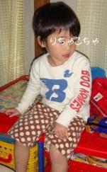 今日は良い天気だったね~お約束の自転車のってたけど~加速して目の前を早く通りすぎたりとかを楽しそうにやってたけど今日は蛇行運転で・・・・チャリンコ暴走族でしたあんなに上手に蛇行出来るんだと感心した位立派な暴走族になれるでしょぅまたもやカメラを忘れちゃったのでお見せ出来ないのが残念だわ・・・ボールでサッカーらしき事もしてたんだけどこっちにパスしてきてもひたすら走って追いかけてくるかれこれずっと走り回ってたから相当疲れたはず相変わらず空気を何度も蹴ってたけどね履いてたムートンみたら先だけハゲハゲになってたょおうちに帰ってきてからDREAMBABYS 七分袖ロンT 110DADDY ヒッコリーDBは裾の切り替えが可愛いな~って思って買ったんだけどよく見たら王冠とか全然ないね他にも買ったのでそのうちまたお披露目しますぅリクエストにお応えして・・・そんなに待ってない??乙女こちゃっぺなにも言ってないのに、このポーズです。ハイ。+まりもん+