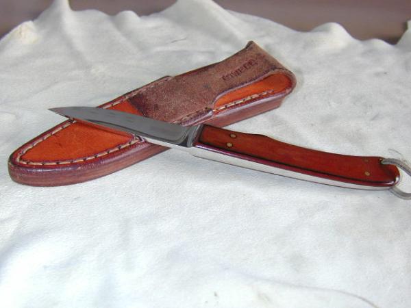 名品!!1977年製米トエル作のナイフ。未使用米国のカスタムナイフメーカーで有名なトエル(TOWELL)の1977年なスモールナイフの作品です。影像の通り、ブレードをハンドルから延長する形で非常に薄く削りこんだ、メスのようなワンピースの作品で、今では手に入れることの出来ない、非常に美しいの幻の作品です。シースもTOWELL本人の作品です。サイズは全長17cm、ブレード長7cmです。 とゆうのが出てます 物欲太郎の私 欲しくて欲しくて 入札 ただいま15500円 最落が付いてるので 何ぼで買えるかなー