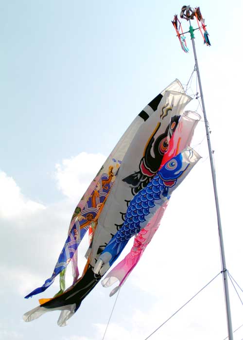 今年も鯉のぼりの季節ですね。うちは,26日にあげたのでじっくりと見ることができました。現在の地に住んで9年目なので9回目の鯉のぼりということになります。空高く泳いでいる鯉のぼりはやっぱりさわやかで良いですね。ただ,今年はちょっと暑すぎるというのがおかしなところですが…GWも本番ですが,うちは明日から出かける予定です。車の中で子供たちが退屈しないように,DVDも借りていました。果たして,ドライブ中じっとDVDを見ているのかわかりませんがちょっと楽しみです。もちろん私はずっとドライバーなのですが…