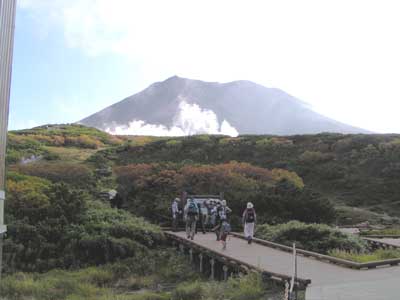 本日の行き先は,表題の通りの温泉。どこだかわかります?大雪山の中岳温泉です。温泉といっても,施設はなし。ただ,温泉がわき出ているだけの温泉です。 職場の仲間で行ってきたのですが,今回は娘2人とカミさんも同行しています。ただ,下の娘が朝から咳き込んでちょっと風邪気味。調子が悪そうです。出発地点は旭岳温泉。ここからロープウェイで,一気に標高1600mまでかけのぼります。とても楽ちんなのですが,4人分で7000円の出費は痛かった…。 お天気は上々。気温も高めですが,姿見駅の周辺は少しずつ紅葉が始まっていました。中岳温泉へは,旭岳の向かって左側の斜面を大きく迂回します。小さな上り下りがあって,石もゴロゴロしているので,全くの散歩気分にはなれません。 何度かの休憩を繰り返して,ようやく比布岳方面の山と裾合平が見えてきました。裾合平は20年以上訪れたことのないところで,とても懐かしい場所です。さらにここから,温泉へ向けて木道の上をだらだらとのんびり歩きます。真ん中の娘は,先頭を切ってどんどん進むのですが,下の娘は転んだり泣いたりしながら最後尾をゆっくり歩いていきます。本当に参ってしまうのですが,ここに置いていくわけにもいかないので,歩くのを応援するしかありません。 そうしているうちに,ようやくあたりが硫黄臭くなり,中岳温泉に到着しました。たくさんの人が来ており,中には全身で入浴している人もいます。早速,私たちも足湯といきました。 暖かい温泉につかって,ちょっぴり疲れも吹っ飛びました。帰りは往路を戻りましたが,最後はほとんどカミさんと2人で,下の子をだっこしていました。明日,腕が上がらなくなったらどうしよう?