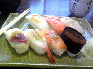 年度初めですが,今日は転勤する先生のお手伝いで,富良野まで行きます。朝,9時に集合して出発です。富良野までは1時間ほどですが,居住する家はさらにしばらく走らなければなりません。昔すんでいた町ですから,道路はすべて懐かしいものばかり。日曜日に行った上富良野までは,かなり雪解けが進んでいて驚きました。 引っ越し先についてみると早くも荷下ろしが始まっていました。ご夫婦2人とも先生なので,両方の学校の先生と受ける方の方々が来ていて,人手は余るほどです。あっという間に終わってしまいました。ちょっと寂しいところですが,2人でがんばってください。と言うことで,最後のお別れをして帰りました。帰りに,お腹がすいたので大きいお寿司で有名な「福寿司」で昼食。1貫が普通のお寿司2個分はあるのです。一口で食べようとすると,結構大変です。おかげで,夕方までお腹いっぱいでした。久しぶりでしたが,おいしかったです。 マグロは食べてしまいました〈中生)