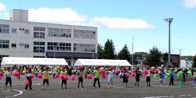さあ,運動会本番の朝です!曇り空ながら雨は降っていません。しかし,予報は完全な雨です。5時半に学校に到着しました。教頭はしきりに周りの学校と連絡を取り合っています。やはり,うちだけ別の判断をすると大きな問題となりますからね。 そして,6時数分前。雨がぽつぽつと感じられるようになってきました。そんな中,ど~ん!他の地域から花火の音が聞こえてきました。こうなると,もうやらないわけにはいきません。そして,打ち上げ1分前。運動会決行が決まりました。そして…ど~ん!初めて花火の打ち上げを見ました。 運動会の開始です。午前中は,ぽつぽつ降るものの一部競技を変更して,続けていくことができました。昼休みに,気象庁の降雨情報を見てみると,なんと上川盆地だけ雨が降っていません。周りは降っているのに,そこだけぽっかりと穴が開いたように降っていないのです。しかし,それも時間の問題でした。 午後からは雨が少し強くなってきました。それでも,児童の競技はすべて終了。閉会式はテントの中で行いましたが,予定通り終えることができました。道内の地域によっては,できなかったところもあるようですが,ホッと胸をなで下ろした1日でした。 夜は打ち上げです。花火ではありませんよ?