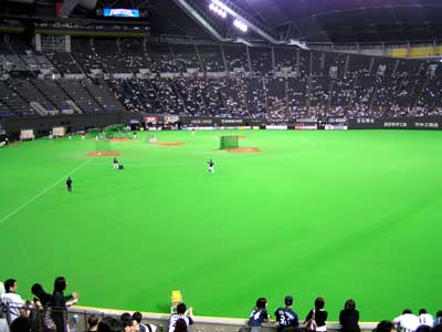本日,札幌ドームへ行ってきました。今年は,週末の試合がこの日にしかないので,何が何でも行くことにしていました。本当は,職場の花見があったのですが…。バスターミナルまで自転車で行って,そこから「高速あさひかわ号」です。札幌までは2時間かかりますが,JRで行くより安いんですよね。休みの日は時間よりお金を大切にしたいものです。 ところが,地下鉄を乗るところで失敗しました。ボーッとしていたのか,反対方向の終点の運賃を見て買ってしまったのです。地下鉄のホームに行くところで気づきました。この頃からなにやら暗雲が立ちこめていたのかもしれません。外野のビジター席が何と,1ブロックしかありません!たいして応援にこないだろうという,予測で作られたのでしょうね。事実少ないから仕方ないのですが,何だか狭いところに押しやられたようでがっかりです。 試合も,チャンスに打てずにがんばっていた小松を援護することができず1点差で敗退。実に私が応援に行って時の成績が1勝7敗になりました。勝率1割2分5厘。何だか行かない方がいいような気もしてきました。でも,シーズンは始まったばかり。まだまだ応援するぞ!がんばれ! バファローズ!