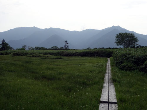 沼ノ原分岐からは,別天地です。木道の上をトムラウシや石狩連峰を眺めながら,湿原地帯を歩いて行きます。心地よい風が汗ばんだ体から熱を取ってくれます。 こんな所で1日のんびりしていたら,何だか帰りたくなくなってしまいそうです。しかも,人っ子ひとりいない自分だけの世界なのです。しばらく景色を眺めながら歩いていると大沼に到着しました。 テントを張っている人もいませんでした。予定よりも少し早いようですが,まだ先は長いので水分補給だけして出発します。やがて,湿原地帯を離れて下り道になり,五色の水場に到着しました。ここは,学生時代「集中登山」と称して1週間歩いた途中のテン場です。懐かしい場所でしたが,周りから虫の集中砲火を浴びて大変な事になりました。特に,顔や帽子の周りは虫除けがあまり付けられないので,でこぼこに刺されてしまいました。ここもすぐに退散です。 ここから道は急登です。五色ヶ原の台地に出る登りなのですが,大きくえぐれていて滑りやすそうです。登りは何とか大丈夫ですが,帰りの下りは苦労しそうです。 登り切ると,ニペソツが見えてきました。右には,沼ノ原山も見えます。なおも進むと,突然前方数メートルの曲がり角から重そうな音が聞こえました。クマ? 思わず顔が恐怖の表情になりました。やばい! と思ったのもつかの間,本日初めての登山者と出会いました。(もしかしたら,恐怖の表情を見られたかも) そこからまもなく,お花畑の連続となります。 立ち止まってゆっくりしている暇はありませんが,チングルマやアオノツガザクラなどの定番の花が咲き乱れています。全く見飽きることがありません。 ただ,道自体は木道もあるものの,所々泥道があって結局は靴を汚してしまいます。歩くのには木道は助かるのですが,靴が泥だらけになるのは意味がないですね。 道はどんどん登っていきますが,それほど急でもないしお花畑が続くので,飽きずに登っていくことができます。でも,上部に行くともっと素晴らしいお花畑がひろがっているのです。 思わず「うわー」と叫んでしまいそうな群落です。一時期よりも規模は小さくなったような気がしますが,辺り一面に咲くチシマノキンバイソウは素晴らしいですよ。そして,目的地の五色岳にあっけなく着いてしまいました。 ここは,縦走路の途中の突起に過ぎないので,山頂に立つこと自体大した意味はありません。まあ,五色ヶ原のおまけ程度で,目的地としました。 山頂には誰もいなくて,ガスっているので展望もありません。少し肌寒いですが,Tシャツだけでも耐えられる気温です。下界の暑さを考えたら,自然のクーラーが心地よいですよ。パンを食べて,20分ほどで下山とします。何だか,雲行きが怪しいので急ぎましょう。 (続 く)