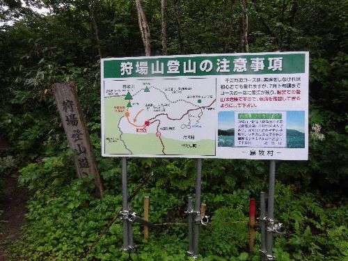 島牧の道の駅でキャンプをして,明るくなる頃に起床。朝食を摂ってすぐに出発しました。のんびりしてると,周りの迷惑になりますからね。さて,登山口は,すぐ近くの賀老の滝の標識にしたがって左折します。ここから舗装された道をかなり山の中へ入っていきます。どう考えても,クマと出会えそうな感じがしたのですが,クマはいませんでした。キャンプ場を通過しますが,だれもいません。当初ここまで前日に入ろうと思っていたのですが,暗がりでこんな所でキャンプはできませんでしたね。そして,登山口にもだれもいませんでした。天気も良くないので仕方ありませんが,せっかくの山の日なのにね…。さあ,だれもいなくて心細いですが,出発します。歩き出すと,思った以上に草がかぶっていて,前日の雨で濡れているので,ズボンまで濡れ出します。おまけに,霧雨も降ってきたので急遽雨具を着用しました。夏の雨具ほど嫌なものはありませんね。濡れなくても汗で内部から濡れてしまいます。おまけに,加齢臭の嫌な臭いもこもります。そんなやる気の出ない登山で癒やしてくれるのは周りの環境でしょう。合目表示は,時間の目安になります。でも,何だか間隔が一定ではないような気がします。8~9合目はすぐなのに,9~山頂までがやけに長いです。サンカヨウの実。食べてみたい色をしています。登ってくるとこんな景色です。あまり,期待はできませんね。ブドウマイマイ。初めて見て感激しましたが,その後いたるところで見かけました。他ではあまり見ないカタツムリです。やがて,樹林帯からハイマツ帯になって,視界が開けてきます。でも,辺り一面ガスっていて,何にも見ることはできません。そうこうしているうちに,下のお花畑に着きました。エゾカンゾウが見事な群落を作っています。もう少し早い時期には別の花が咲いているのかな?ここから,どんどん登っていきますが,暗い寂しい登りが続きます。ようやく,真駒内コースとの合流点に着きました。でも,標識はこれだけ。これじゃ,真駒内コースとの分岐か気付かない人もいるかもしれませんね。現在位置がはっきりしたところですが,スマホのGPSと場所が合わないような気がしました。どちらかが間違っているのでしょうか。稜線に出たところが南狩場です。もうすぐ山頂かな?と,初めての私は気が焦りましたが,意外とここからが長いです。一度,下がって上のお花畑を歩くことになります。そして,ガイドブックにも描いてある親沼を過ぎ,小沼を過ぎて軽く登るとようやく山頂着です。だれにも会わず,だれもいなく…。寂しい山頂でしたが,独り占めできてちょっとうれしいかな? 道南の山,初登頂です。でも,今日中に旭川まで帰りたいので,ゆっくりもしていられません。下山開始です。下山中にやっと数パーティーに会いました。人に会えると,ホッとします。こうして,無事狩場山の登頂は成功しました。帰りには,有名な賀老の滝に寄ってきました。でも,見える場所は2箇所あるんですね。私は第2展望台から見て見ましたが,キャンプ場から入った方が,はっきり見えるのかもしれません。帰る途中,ちはせ川温泉というひなびた温泉に入ってきました。こちらも独り占め。素朴でとっても気持ちの良い温泉でした。思ったよりもぬるくて,この時期に入るにはぴったりです。この後,旭川までドライブしましたが,お盆の時期と重なってかなり道路は混んでいました。