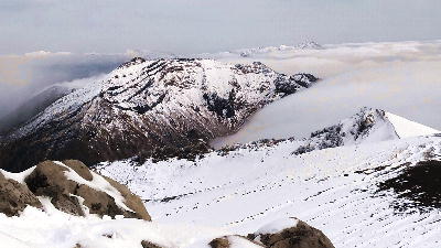 小さなピークを越えていくと,一度平坦になっていよいよ十勝岳の登りです。