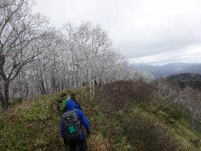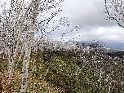 白樺峠の登山口からは,ちょっと冷え込んだのか雪模様の山頂が見えます。