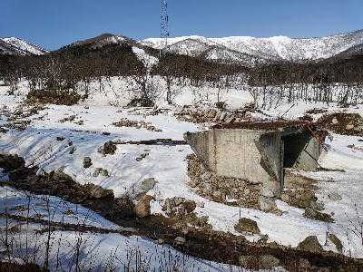 仕方ないので,スノーブリッジを探すために荒れた河川敷に下りて,