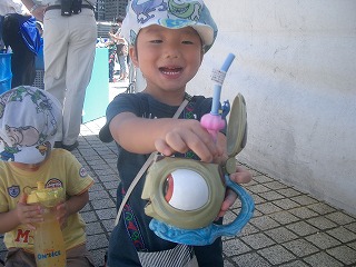 一日?二日?遅れましたが・・8日の日記を書いちゃいますねんえーっと ニモ~!!見てきましたディズニーオンアイス IN 大阪城ホールですいつもの メンバーで・・さかぶーぶーちゃんですねそして 僕ちゃんずです11時開演って事で 10時に大阪城順調に 到着順調です!!が事件発生さかぶーぶーちゃん チケット忘れました~こてやん 笑っちゃったさかぶーぶーちゃん 顔色悪くなってましたでも 怒ってもね~ しーゃないしねぇ(^^ゞとりあえず 係りの方に相談・・・チケットの番号が分かれば・・なんとかって入れる?って事で さかぶーぶーちゃんの 旦那様にTEL旦那様お休みで 自宅の掃除してくれてて・・にいたのよぉ~ 実は さかぶーぶーちゃんの旦那様のチケット無理に・・譲ってもらったこてやんですどうしても さかぶーぶーちゃんと大阪に行きたかったので・・(ごめんねぇ~ さかぶーぶーちゃん一家よぉ~)とにかく旦那様のおかげで セーフ!!中に入れました!!えーと 内容は・・・やっぱり ニモ足あったよぉ~で、なんやろ?? 面白いか??と言われると・・・あんまりでした・・うーーん 残念とにかく、ニモの顔が 人間の胸のあたりについてるんやけど・・どうみても Fカップ 以上にしか見えない分かりにくいかなぁ~なんて 言ったら・・・何しろ 胸が めっちゃ出てるねん!!でタイツは その変装してる 魚と 同じ色になってて やっぱり 足はあるんですねぇ~話の内容は 映画を見とかないと、多分、分からないでしょう・・まぁ 何事も経験☆経験!!何が すごいって・・・グッズ?とか 売ってるんだけど・・めっちゃ高くてびっくり価格だよぉ~このゆうくん持ってるやつ・・カキ氷でして・・ お玉に軽く3杯くらいなんやけど・・1400円でした・・高くないかい??もっと 高いものもあって・・ 2200円のやつとかもあったよぉ~ディズニー恐るべし!!僕ちゃんず・・ グズグズ言うこともあり、ママとこてやんに 怒られることもありましたが2人とも なんとか 良く頑張ってくれました午前中はゆうくん 絶好調!午後はこうちゃん 絶好調!こうちゃんは2歳3ヶ月・・・1キロくらい 嫌・・以上? 自分の足で歩いたかな??靴づれしてたけど・・痛いとか言わずに 最後まで歩いてましたこうちゃん・・ニモの会場で買ったお持ち帰り ポップコーンを片手に歩いてて信号待ちで開けて食べようとしててこてやん あせりました・・・多分 ポップコーン食べたくて歩いてたんやろうなぁ~違う意味 頑張り屋さんですね2人共 ママ大好きで・・不機嫌になると 2人でママに交代で甘える・・ママお疲れ様そして ゆうくんのお誕生日会につづく・・今日は 遅いのでまた 明日あーー 山P話できんかった!!コレも又 明日