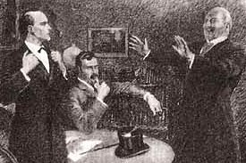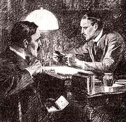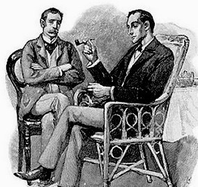 (事件の依頼人の代理人とホームズとワトソン)「3人とも犯人に見えるね」「ここに犯人はいない」「犯人はどこにいるんだ?」「たぶん自宅でしょう」「ところで、ワトソンがスパイだっていう証拠はどこにあるのかな?」「読めばわかります」「え?」「『シャーロック・ホームズの事件簿』のなかの『高名な依頼人』を読めばわかる」「そんなこと言われたって、推理小説とか探偵小説に興味はないし、わざわざ読むのはいやだね」「そういうことならしようがない、では、ワトソンがスパイだと犯人にバレたときのせりふを、わざわざ引用してあげよう」■犯人、ワトソンに向かっていわく、「おまえの目的は何だ? そうか、スパイとしてやって来たんだな。おまえはホームズのスパイだ。俺を罠にはめようとしたな」