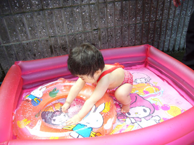 今日は、ママのお仕事がお休みでした久しぶりに良い天気~ 焦げそうなほどに・・・暑い日だったので、お洗濯が終わってから、ネブタンをプールへ実はなかなか入れる機会が無くて、今日がネブタン初プール初めは怖がって泣いて水に入るのを嫌がっていたのに・・・慣れたらもう夢中ですもう終わりねって、じいじが出そうとすると・・・怒っていました(笑)夕方からパパのお友達♀夫妻のお家へ遊びに行って来たよ「たこ焼き」パーティーですネブタンもたくさん食べたよ~1個2個3個・・・10個くらい食べたかな~??美味しいからって食べすぎだよ (ーー;)保育園に行くようになり、ネブタンかなり足腰強くなりました1,2歩よちよち程度しか歩けなかったのに・・・もう10歩くらいつかまらずに歩くようになりましたお気に入りの保育園用バッグを持ち、あんよあんよで、居間から廊下、階段をよちよち散歩最近毎日している、ネブタンのマイブームです上手に歩いているでしょう