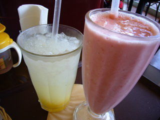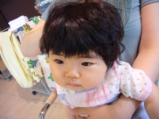 毎日、暑いですねネブタンは、髪が暑くてしんどいみたいで・・・いつも頭に 汗びっしょり & 頭をポリポリ 掻いています5月に美容室でカットしたネブタンの髪もすでに、毛皮の帽子をかぶっているよう・・・ほんとは、ママ が カットしようかと思っていたけど、暑いからちょっとでも薄~く髪をすいてもらおうということで、今回も美容室へまた、ママ抱っこ、パパお菓子、美容師さんカット(当たり前か)できるだけ、短~く、薄~くしてもらったよ大丈夫!大丈夫!またすぐ伸びるよ~さっぱりちて、頭が軽いでしゅネブタン、何だか男の子みたいでちゅか?「ベビフェのミックスジュースが飲みたい」ママの希望で、帰りに《baby face》という奈良県内に数店舗あるカフェへここのミックスジュース(右)が美味しいパパは、(バナナと牛乳の)バナナジュース(左)どちらもすごくさっぱりして美味しいのあと、チョコバナナジュースっていうのもあるけど、さっぱりビターチョコ風味で意外なほどに美味しいしかもフルーツたっぷりで濃くてよくストローが詰まるのママは、パインの欠片と格闘して飲んでましたネブタンのマグと比べても、量もあり、420円はお得です◎ミックスジュースって関西が発祥?牛乳と桃やパインのフルーツのジュース缶ジュースとしても売っているし、牛乳がポイントみたい今日は、昼食に「シーザーサラダ」と人気メニューの「ふわふわ卵帽子のオムライス」も食べました