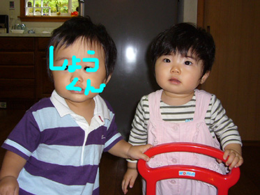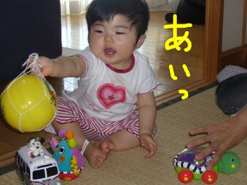 青森へ行っている間に、ネブタン いろいろ芸ができるようになりました6月には「ネブちゃ~ん」と呼ぶと手を挙げるだけだったのが、「はい~」と言いながら手を挙げますばいばいと手を振るだけだったのが、「ばぁばぃ」と言いながら手を振る様になりましたどうも、ありがとう、こんにちは等で、頭をぺこりと下げますただし、ちょうだいの時も、もらう前から初めにぺこぺこと頭を下げてます(^^;)もらうだけじゃなく「あいっ(はい)」とお菓子や物を分けてくれますナースマンの弟の子供 いとこの「はーちゃん」7ヶ月♂ネブタンは、「は~ちゃん」と呼びながら頭をなでなで?立派なお姉ちゃんです最近は「あいあ~い」の電話のほかに、絵本をめくりながら「あにょむにょむにゃむにゃにゃ。。。」まるで声を出して読んでいるようです言葉もマネして話せるようになってます「パァパ」 (パパ)、 「マァマ」 (ママ)、 「じいじ」、「ばあば」って呼んでくれますでもママの父は「じいじ」じゃなくて「おとたん」と呼んでました多分みんなが「おとうさん」って呼んでいたからマネしたみたい(^^;)お気に入りはママの妹たち(ネブタンにとってはおばさん♪)結婚した妹は「○○たん(ちゃん)」、下の妹は 「○ゆみ~」と呼び捨て奈良に帰った今でも毎日「○○たん」「○ゆみ~」と探してます。。。ちなみにこの「○ゆみ~」ナースの卵●夏休みで家に帰ってきてたので、勉強と称してネブタンのお世話のお手伝いさせてました(^_^;)あと大好きなのは「にゃんにゃん」 ネコのこと毎日「にゃんにゃん、にゃんにゃん」と叫びながら外へちなみにネブタンは、これも「にゃんにゃん」hero君宅の《アール♀》も「にゃんにゃん」去年の今日は、まだ産院に入院中だったのに、子供の成長は早いな~