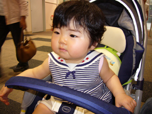 昨晩帰って来ました実家の家族にネブタンがすごくなついていた為、家族の気持ちを考えると、お別れは辛かったですが・・・帰りの飛行機では、神戸から来ていた隣のおじさんと意気投合で、人見知りネブタンも大はしゃぎ青森のじいじと重なっていたのかな。。しかもネブタン後ろの席の小学生くらいの男の子に、ナンパされてました(笑)なんとシート越しに手を握っている二人!?無事にパパ、じいじ、ばあばと久しぶりに再会ちょっと人見知りしてました(^^;)関西は、やっぱり暑いです~今日は、昼から地区の広報誌の撮影がありました一歳になる子の写真を載せてくれるということで本日の撮影のお洋服ちょっとフリフリにしてみましたたくさん写真を撮ってもらい、気に入った顔を選べます写真のリストを(じいじに取られかけた)松嶋菜々子ファイルごと頂きましたこの中から一つ選ばなきゃカメラに向かって笑わせるのも、良い顔をさせるのも難しーネブタンは、モデル業は無理なようです最近のネブタンのマイブームです電話の子機や携帯電話、リモコンを片手で持ち、「あいあ~い、あいあ~い」反対手に持ち替えてまた「あいあ~い、あいあ~い」いっちょまえに「もしもし」じゃなく「はいはい」っお話しているつもりのようです立っちはだいぶ上手になってますが、まだグラグラたまーに、1、2歩足を前に出しますが、あんよは、まだまだなようですでも、おしゃべりもたくさんできるようになり、子供の成長って早いですね(*^_^*)