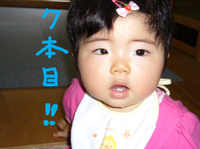 ネブタン青森に出かける前は、歯は、上2本、下2本の 計4本 でした。今は、上3本、下4本が生え始め、計7本の歯が生えてきています離乳食も完了間近で、結構いろいろなものを食べてるよお友達のhero君の奥さんのぺ天使さんと、一緒にお寿司屋さんへ行ったネブタンお寿司の「たまご」 (まだたまごしか食べれないので)を食べたよかなり、お味が気に入ったみたいで、一人でもアグアグしてましたご飯粒(ネブタンが自分で付けたんだよ)付けて、すばらしい食べっぷりこの辺は、ママ似ママより、食いしん坊さんになるのも時間の問題かも☆でも歯が増えて、かじられるとますます痛いんです~本日夕方で、ネブタン1しゃ~いです