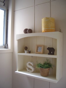 トイレの壁が殺風景だったので、フレンチカントリー棚でディスプレイしてみました。トイレの壁面というと、カレンダーやポスター?と思ったのですが、通行の邪魔になりにくい、ディスプレイには最適な場所なのでは・・・と思い、設置してみました。DIYするのもいいですが、木材にペンキ、釘などを揃えると、トントンか、下手すれば買ったほうが安いです。とりあえずある雑貨をディスプレーしたので、テーマもなく、うまくまとまっていませんが、もっとセンスよく飾れば、奥行きもそこそこあるのでとっても便利です。キッチンのスパイス置きにしてもいいかもしれません。(油や水の飛びにくいところなら)ほんとは屋根がなみなみになっている↑こんなデザインのものにしようと思ったのですが、(今はありますが、)当時たまたま売り切れていたので、こっちにしました。こんなのもステキですね~。