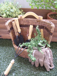 これはだいぶ前に購入した、LE JARDIN ガーデニングツールSETなのですが、19日9時59分までポイント10倍 & 限定特別価格3,600円→2,980円という超お買い得なショップを発見したので急遽レポートします。見た目は雑貨にありがちな頼りなさを感じるかもしれませんが、結構丈夫で使えるツールセットです。このセットを買った当初のうちの植え込みは椿?かなにかの根っこがびっしり植わっていてそのままではとても植栽できないので、根っこ取りが必須の状態。とっても苦労しましたが、このセットの根切りが大活躍しました。グサグサ刺しても、てこの様な使い方をしても折れず、グラグラせず、しっかり役目を果たしてくれました。使っているうちに多少黒の塗装が剥げますが、見た目がオシャレなので、使い込んだような味が出ます。付属のかごは収納用としてもいいですが、小さな鉢植えを入れてトレリスに飾るのもお勧めです。手袋も茶系なので、汚れが目立たず、いつまでも綺麗に使えます。送料は650円~です。5千円以上は送料半額、1万円以上は無料です。LE JARDIN ガーデニングツールSET【ポイント10★F0716】【SALE★F0716】を詳しく見る★4日間限定 BIG SUMMER SALE ポイント最大10倍 キャンペーンの詳細★