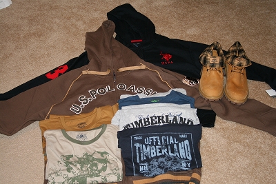 買ったものは ポロの長袖Tシャツ2枚 $25 ポロのパーカー2枚 $55 ティンバーガーデンの長袖Tシャツ4枚 $45 ティンバーガーデンの靴1足です $75全部で 約$200 で~す アウトレットの、SELL中でしたので 安く買えました