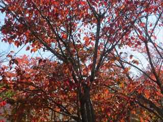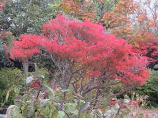 我が家の庭のもう1本のモミジが色づくやっと色ずいてきました。