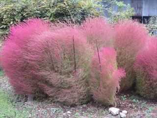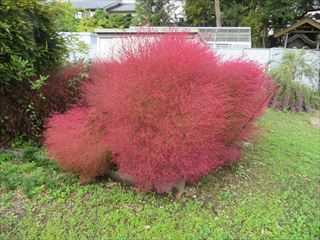 買い物の途中でコキアが赤くなっているのを見つけました。