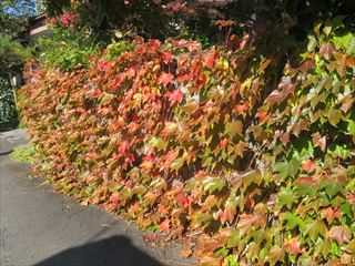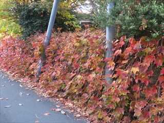 我が家の塀のツタが赤くなりもうすぐ散ります。