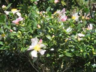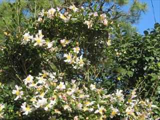 散歩の途中でサザンカが満開になっているのを見つけました。