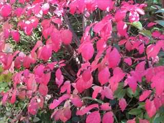 買い物の途中でニシキギが赤くなり始めているのを見つけました。
