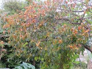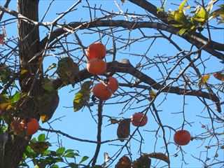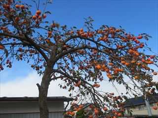 買い物の途中で木いっぱいにカキがなっているのを見つけました。