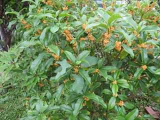 買い物の途中でキンモクセイが満開になっているのを見つけました。