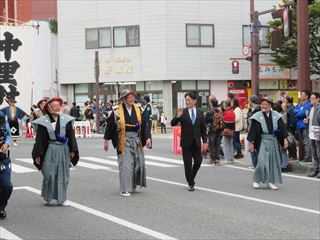 古川秋まつりの中里後陳大名行列を見て来た。七日町よりスタートして駅前までの コースでです。体格ブラザースと上重アナがちょっとだけ参加しました。 先頭は伊藤大崎市長と小野寺衆議院議員と大崎市の有力者。 中里村の旗を掲げて出発。 奴のグループが続く。 若殿様が続く。 お姫様と腰元が続く。 体格ブラザースがちょとだけ参加。 上重アナもちょっとだけ参加しました。 リオーネ古川駐車場ではたらくくるま大集合。